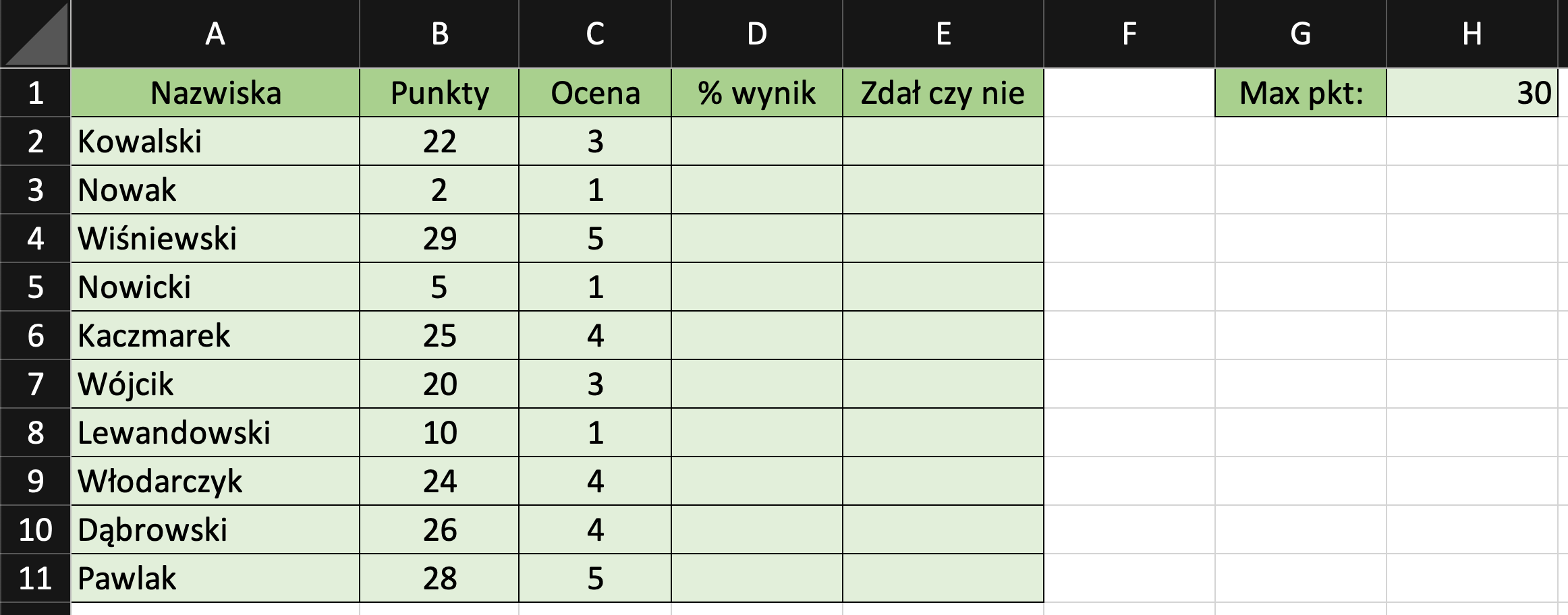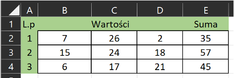 Ostatecznie, arkusz kalkulacyjny będzie wyglądał w następujący sposób: