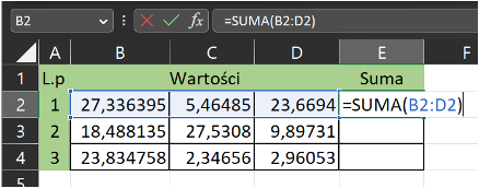 Excel wykona obliczenia i wyświetli wynik w wybranej komórce.