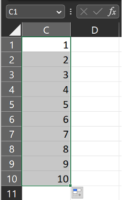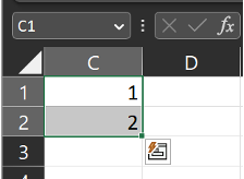 Automatyczne uzupełnianie może być również używane do uzupełnienia danych liczbowych lub ciągów znaków, na przykład adresów e-mail lub kodów pocztowych. Jeśli na przykład wpiszesz "1" w komórce C1 i "2" w komórce C2, możesz przeciągnąć kursor w dół, a Excel automatycznie uzupełni resztę komórek kolejnymi liczbami.