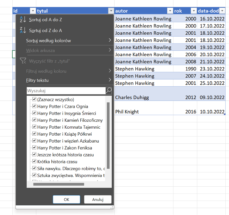 Sortowanie i filtrowanie: