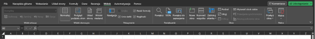 Karta Widok - tutaj znajdują się opcje przełączania pomiędzy różnymi widokami arkusza danych.