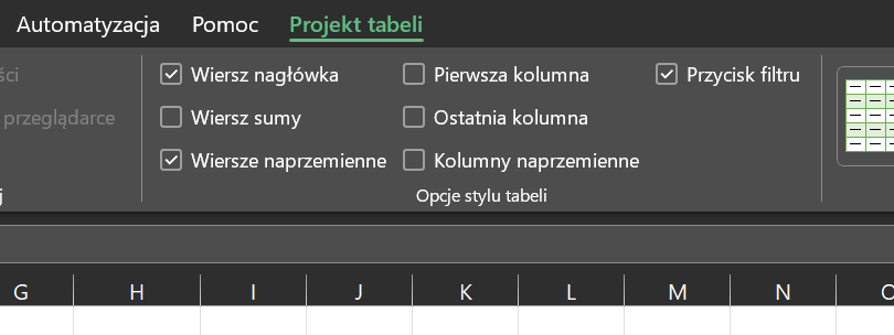 Formatowanie jako tabela: