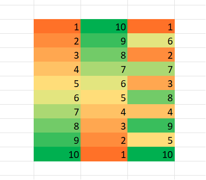 skala dwukolorowa – gdzie wskazujemy kolor dla wartości minimalnej i maksymalnej,
