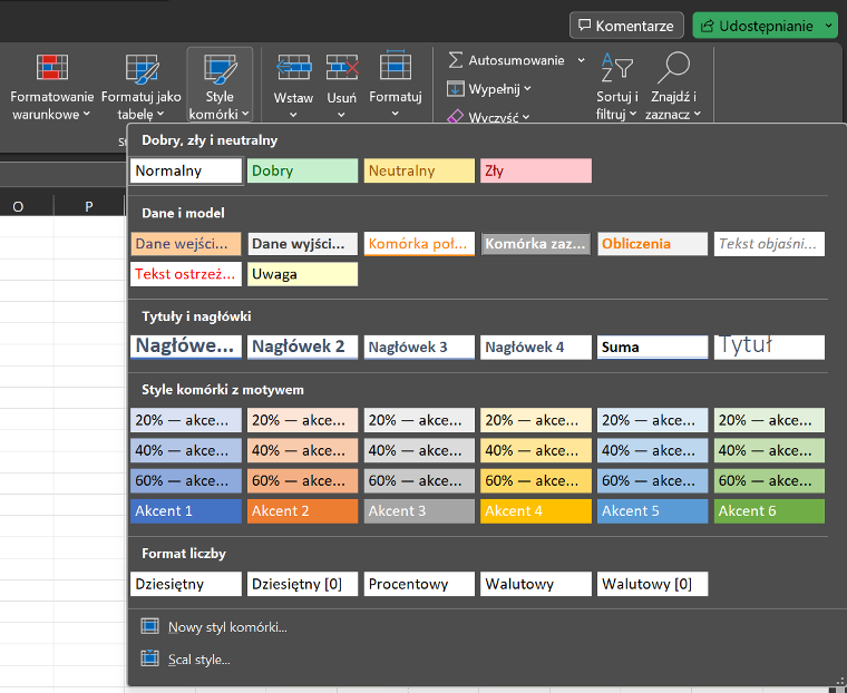 W razie potrzeby użytkownik może także tworzyć własne style komórek, dopasowane do indywidualnych potrzeb.