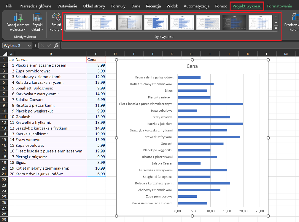 Po utworzeniu wykresu pojawią się dodatkowe karty narzędzi, takie jak Projekt wykresu czy Formatowanie, które umożliwiają: