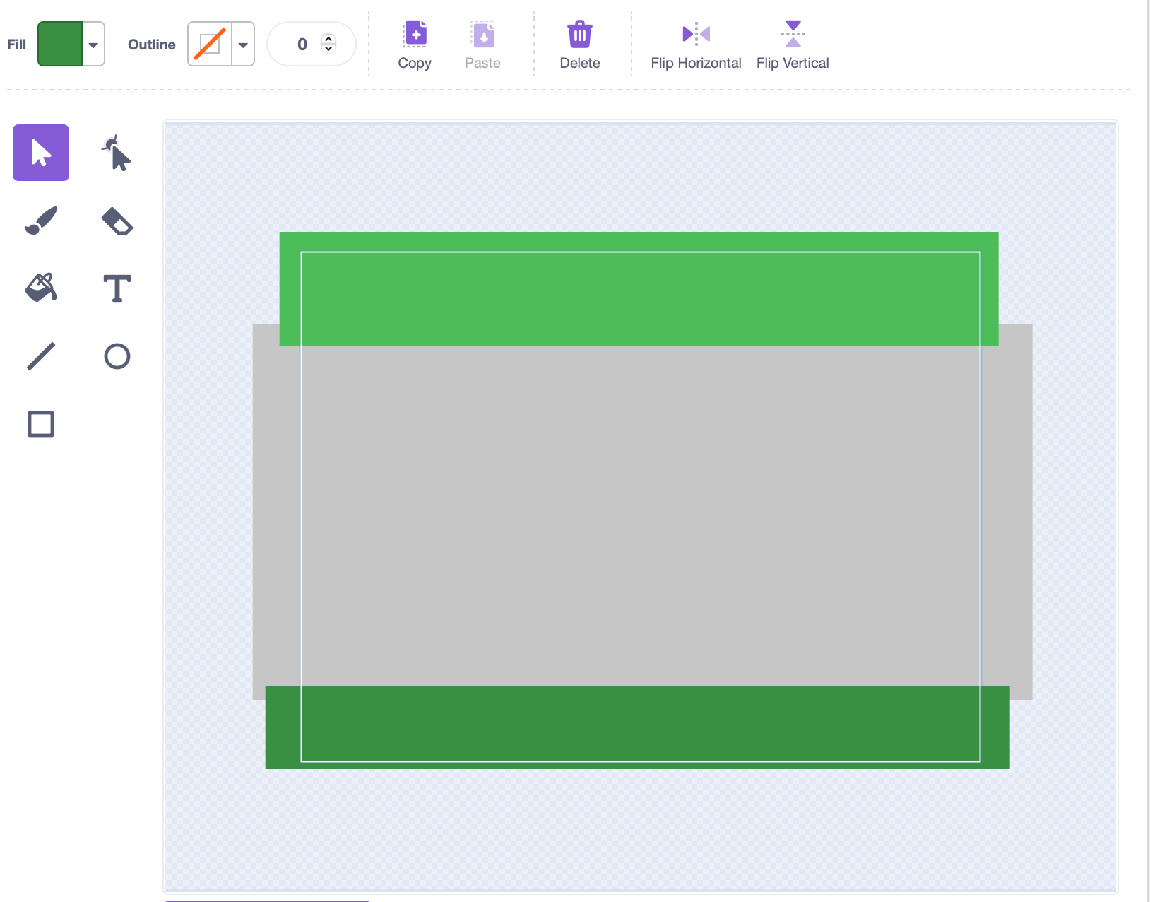 Tło do naszej gry wykonujemy przy pomocy dostępnego edytora obrazu. Przy pomocy figur geometrycznych rysujemy planszę gry składającą się z trzech pól: startowego, drogi oraz mety (każda część innego koloru).