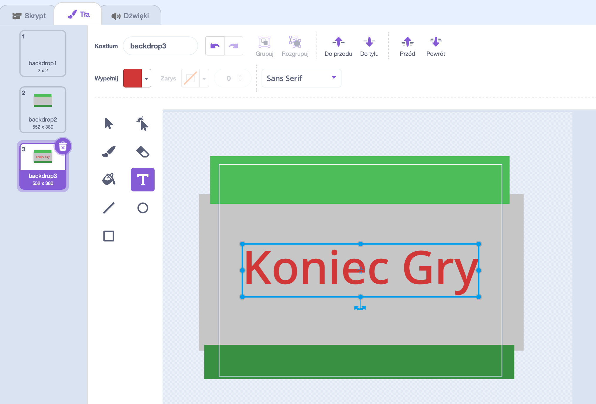 Duplikujemy tło i przy pomocy edytora obrazu dodajemy napis "Koniec Gry" do tło2.